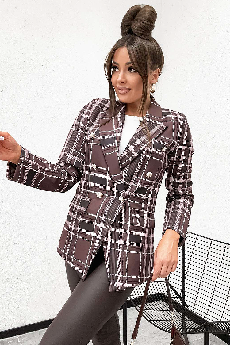 • Разнообразете визията си с това сако с кариран десен, подходящо за различни модни комбинации.