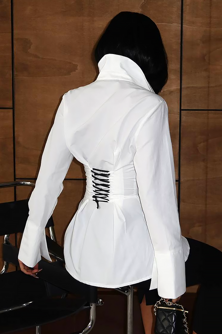 - Моделът е с вталена и атрактивна кройка, яка, детайли отпред и връзки на гърба.