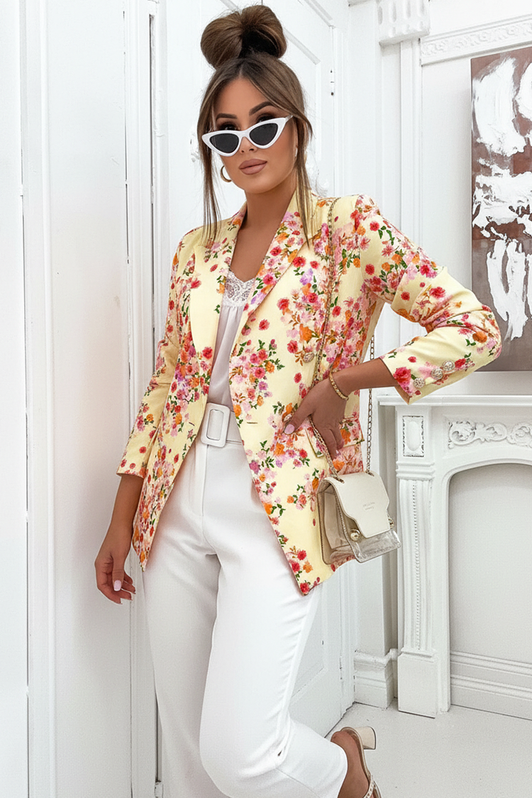 - Разнообразете визията си с това сако с флорален десен, подходящо за различни модни комбинации.