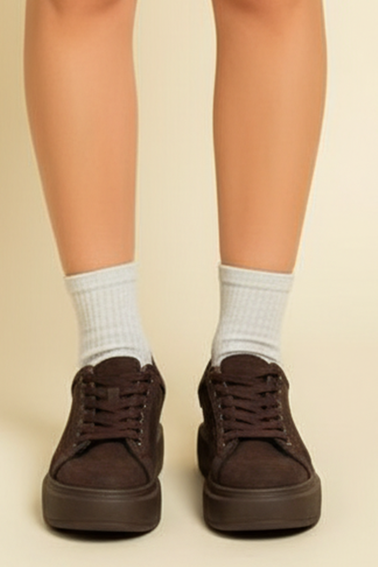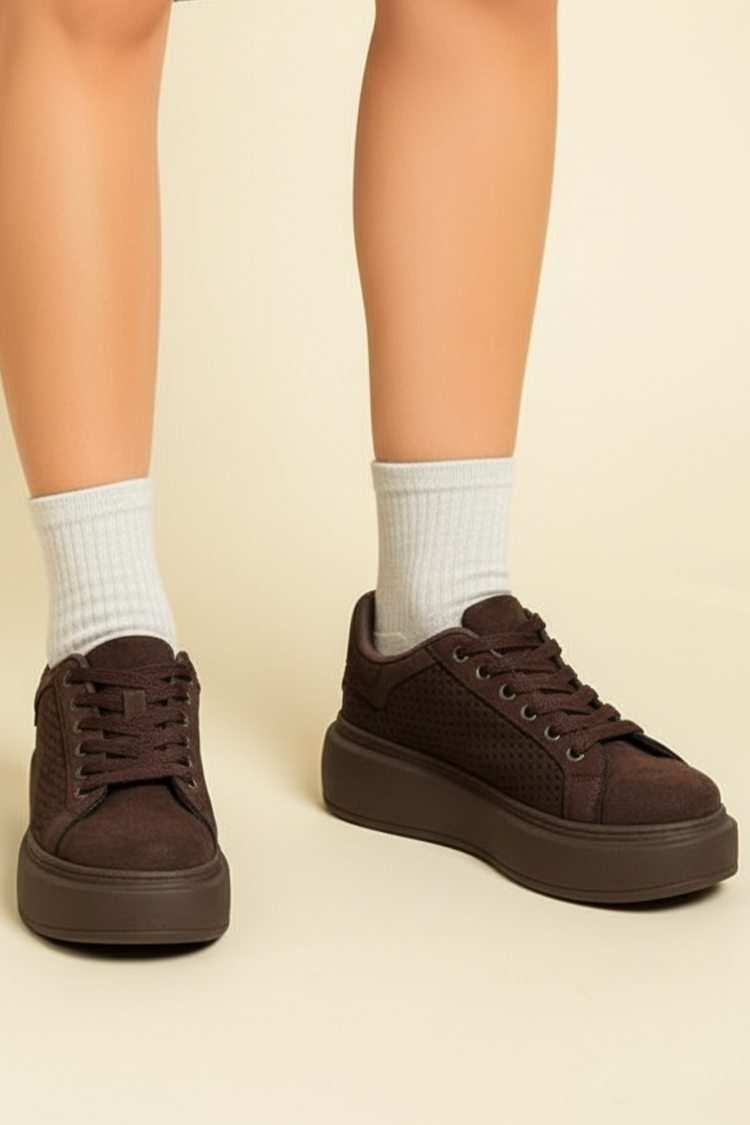 • Стилен модел от висококачествен еко велур с връзки – за максимално удобство при обуване и носене.