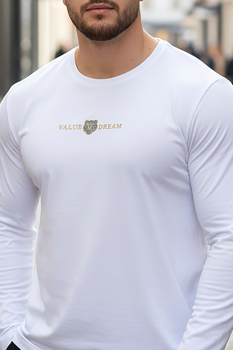 • Практична мъжка блуза с обло деколте, дълги ръкави и надпис, подходяща за ежедневието.