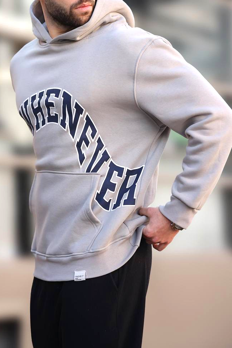 - Практичен мъжки суичър в сив цвят с отличаващ се, контрастен надпис, подходящ за ежедневивето или разходка.