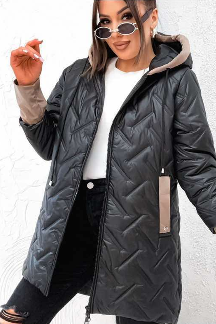 - Моделът е с атрактивен дизайн, практично закопчаване с цип и качулка с връзки.
