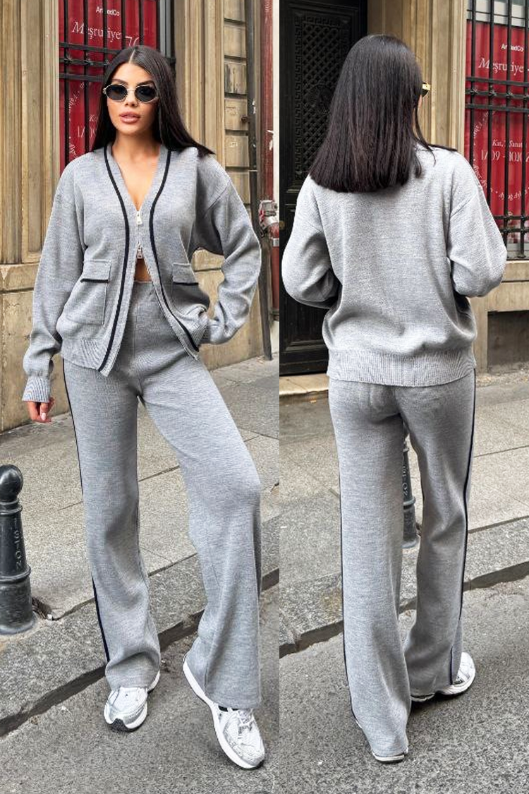 - Жилетката е с удобна кройка и закопчаване с ципове. Панталонът е с висока талия и дълги крачоли.