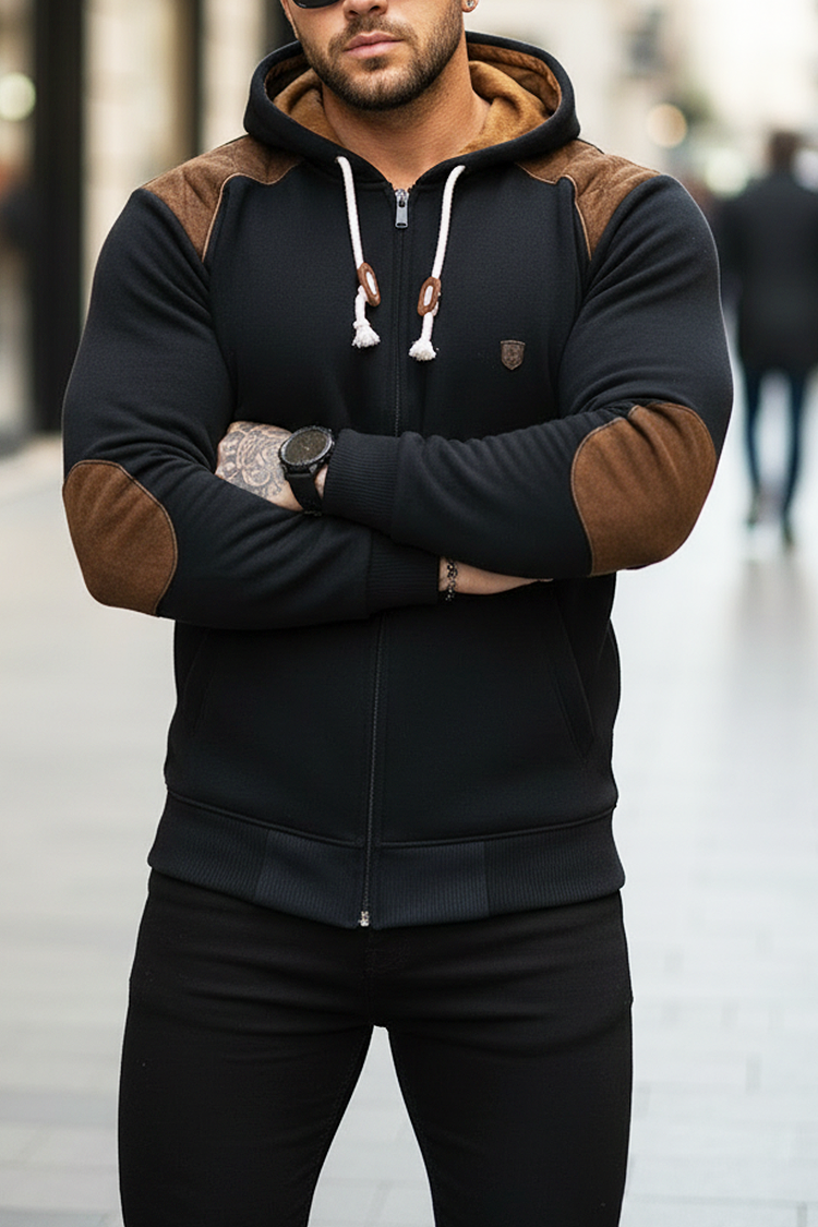 - Удобен и модерен мъжки суичър с качулка и джобове, подходящ за ежедневието или разходка.