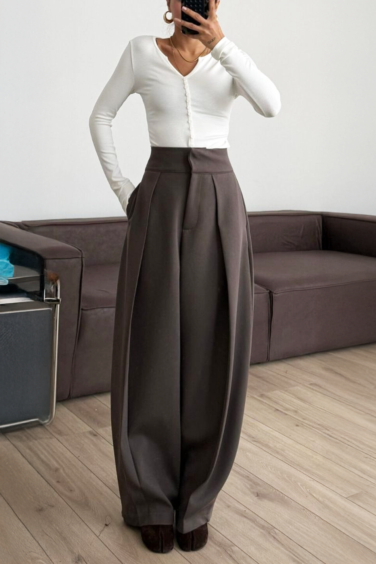 • Моделът е с висока талия, ефектен набор и елегантна кройка.