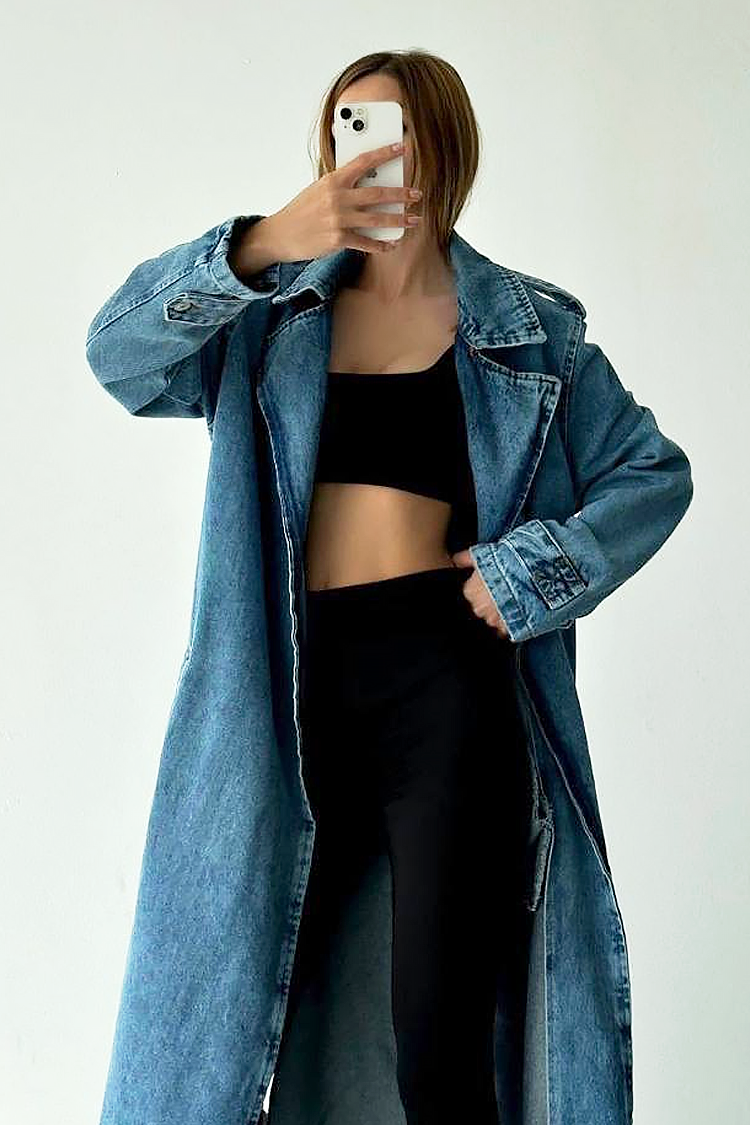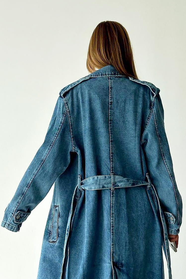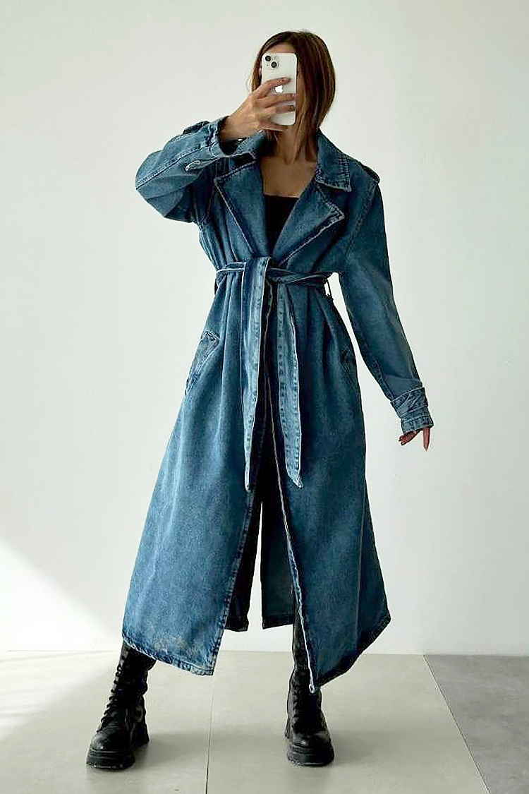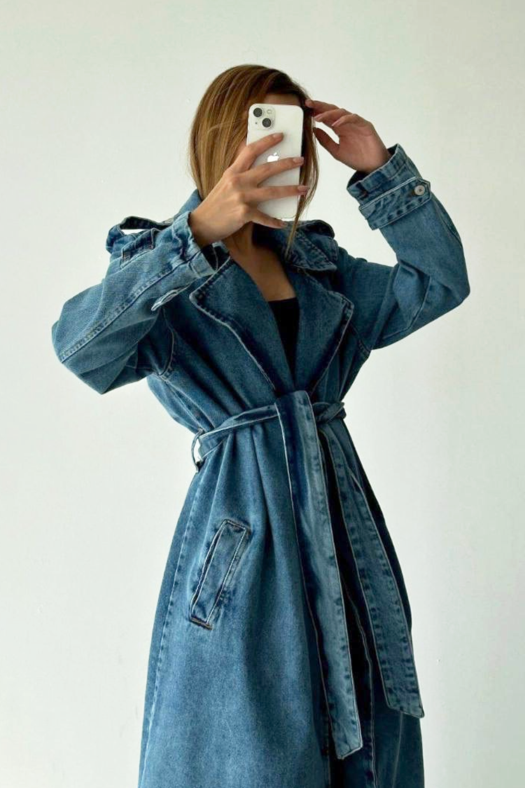 • Допълнете вашата тренди аутфит с дънков тренчкот, подходящ за различни модни съчетания.