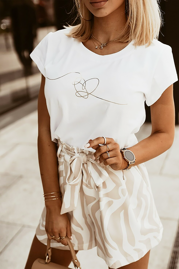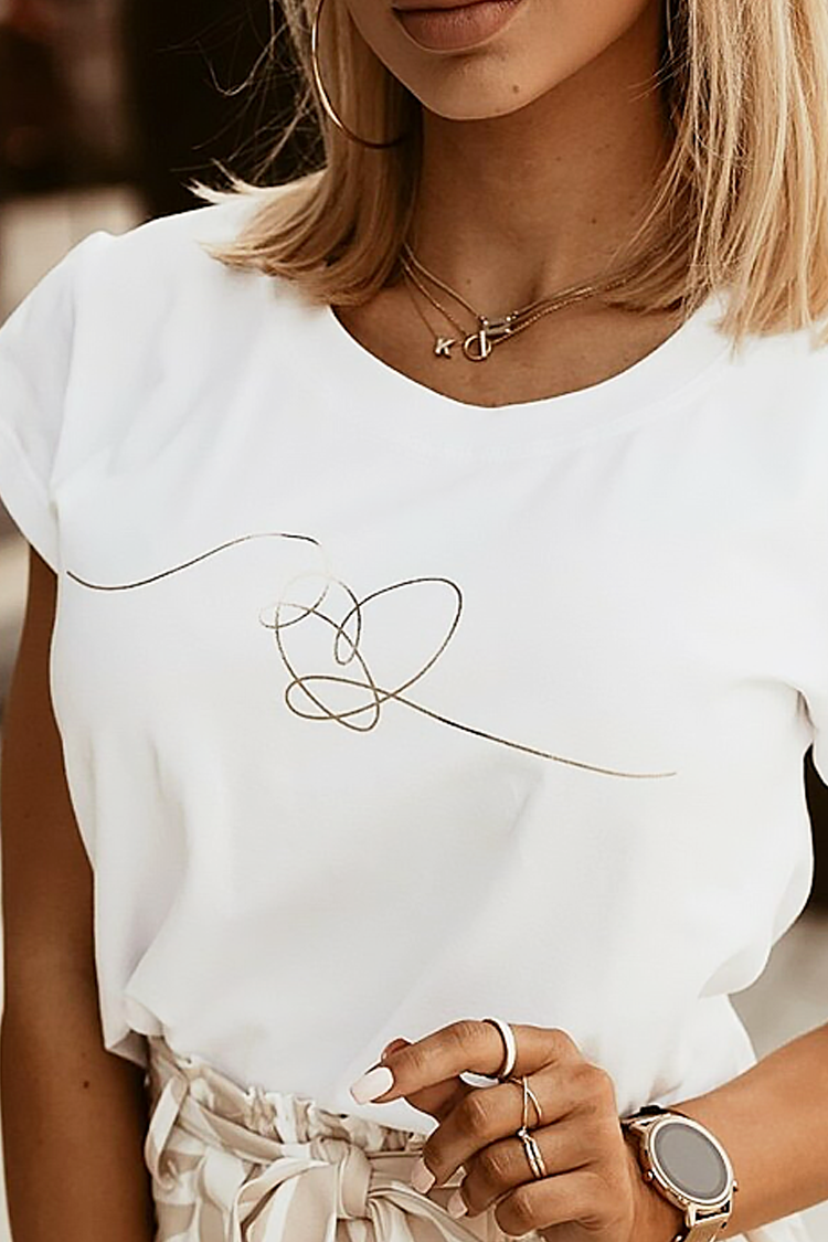 - Моделът е с къси ръкави, обло деколте, прецизна кройка и бял цвят.