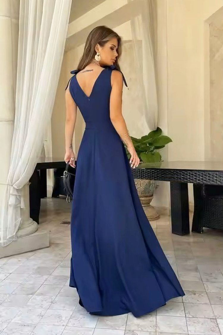 • За да привлечете всички погледи, изберете тази дълга рокля с невероятен дизайн в класически цвят.
