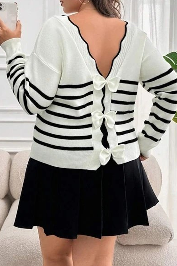 - Моделът е със свободна кройка, атрактивни панделки на гърба, и черни детайли.