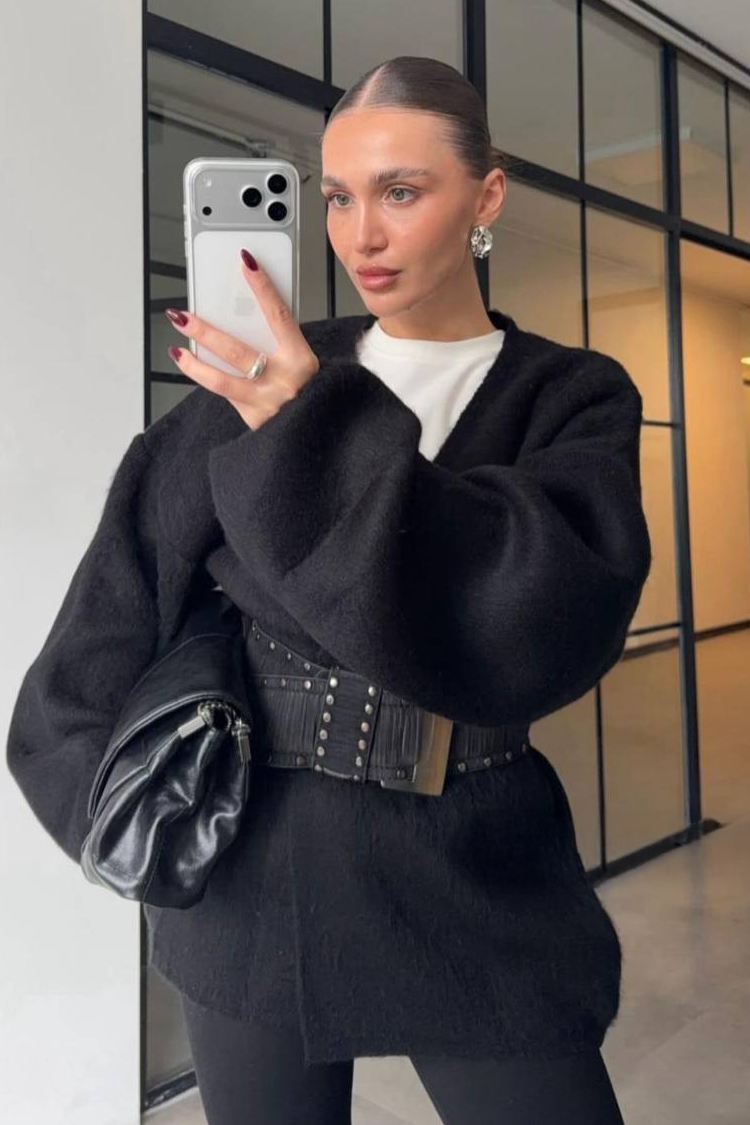 - Моделът е висок 170 cm и позира с универсален размер.