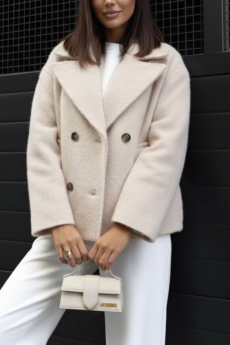 - Моделът е с къса дължина, странични джобове и копчета отпред.