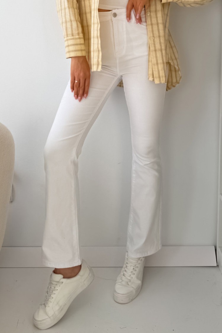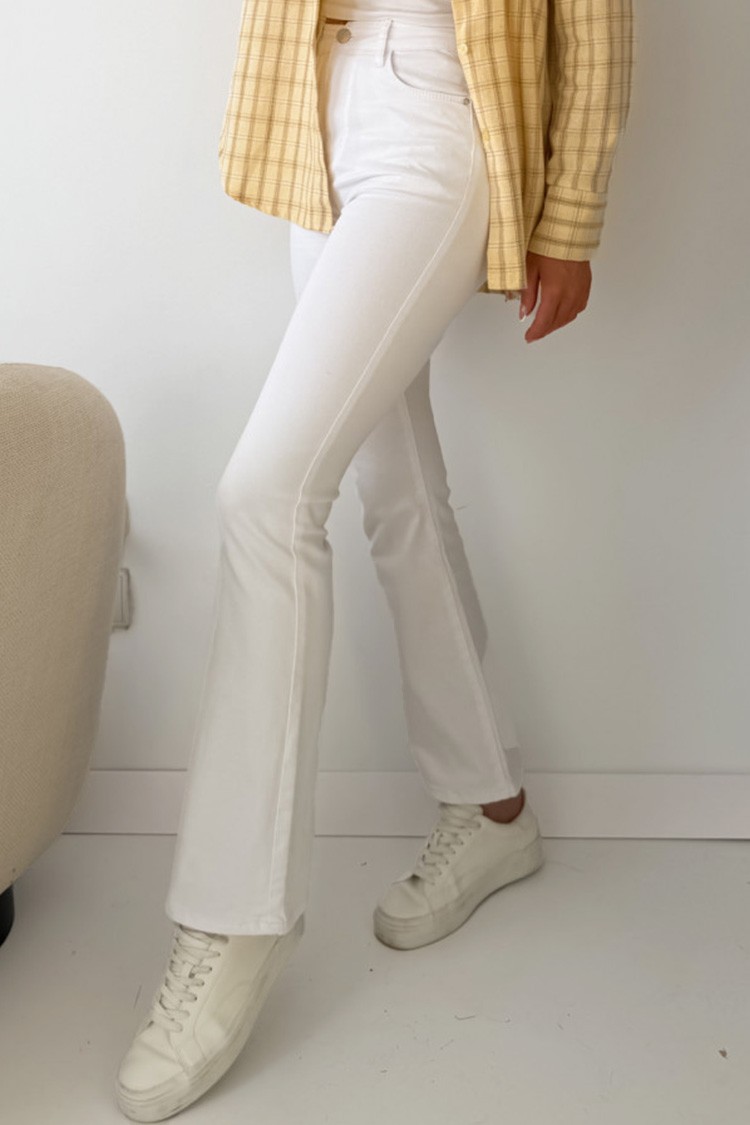 - Моделът е с висока талия и разкроен крачол, осигуряващ комфорт и визуално издължаване на силуета.