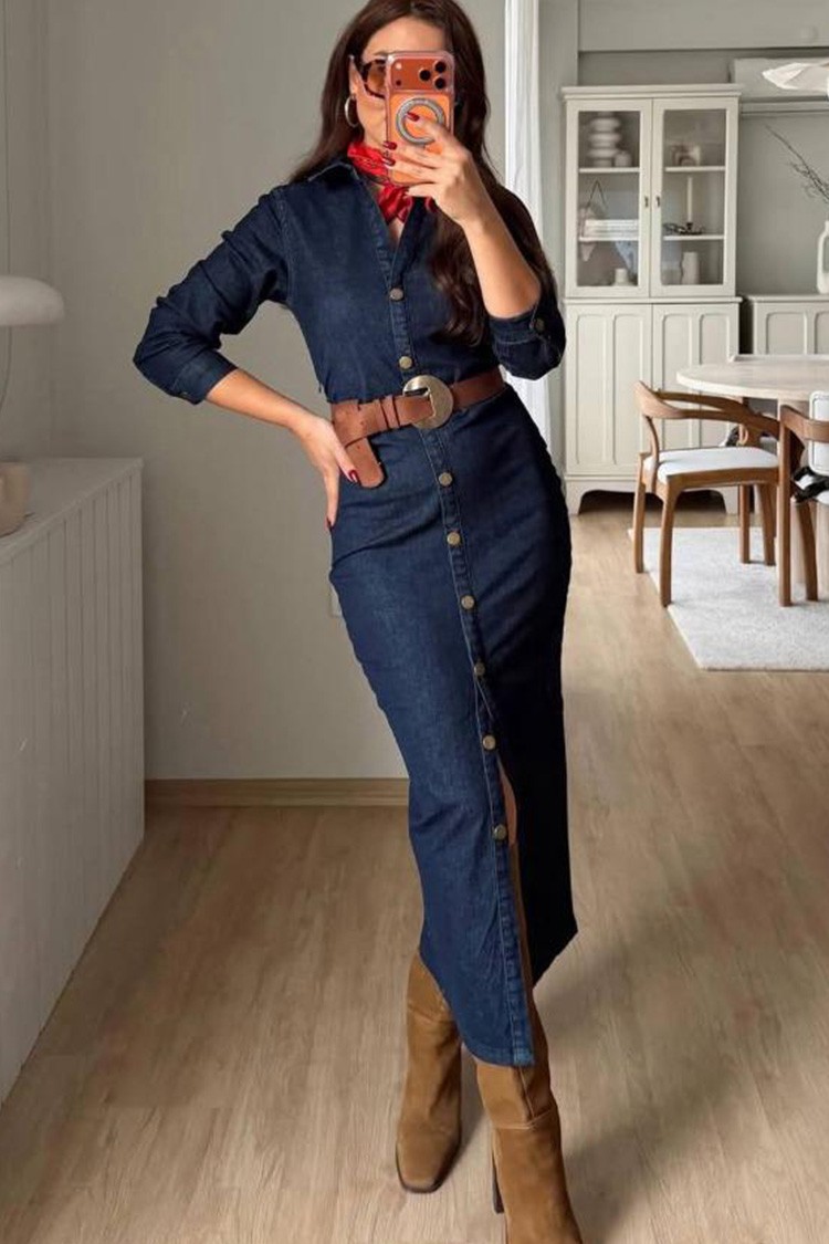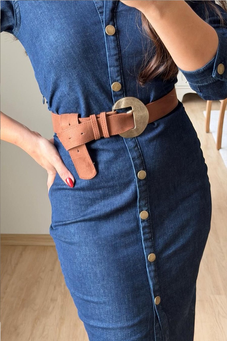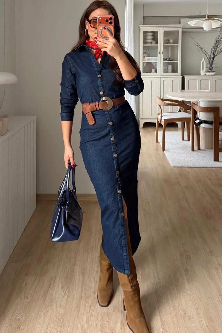 - За нежна и тренди визия изберете тази рокля от деним, перфектна за ежедневието.