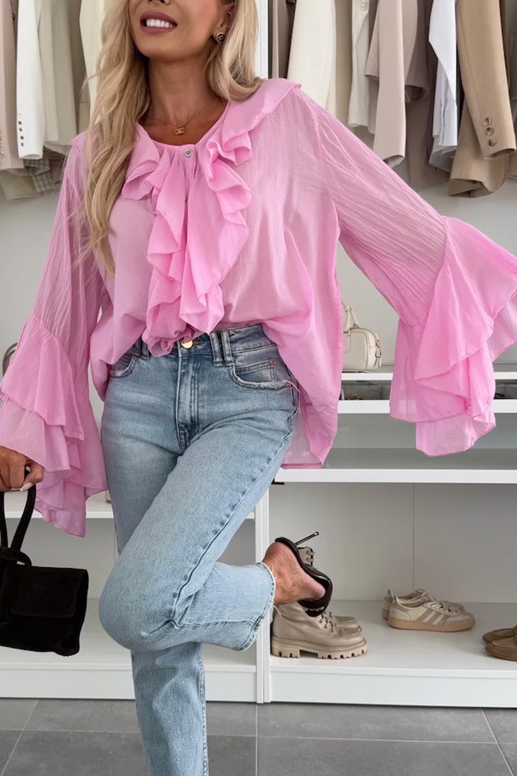 - Моделът е със свободна кройка, копчета, атрактивен дизайн и волани по цялата дължина.