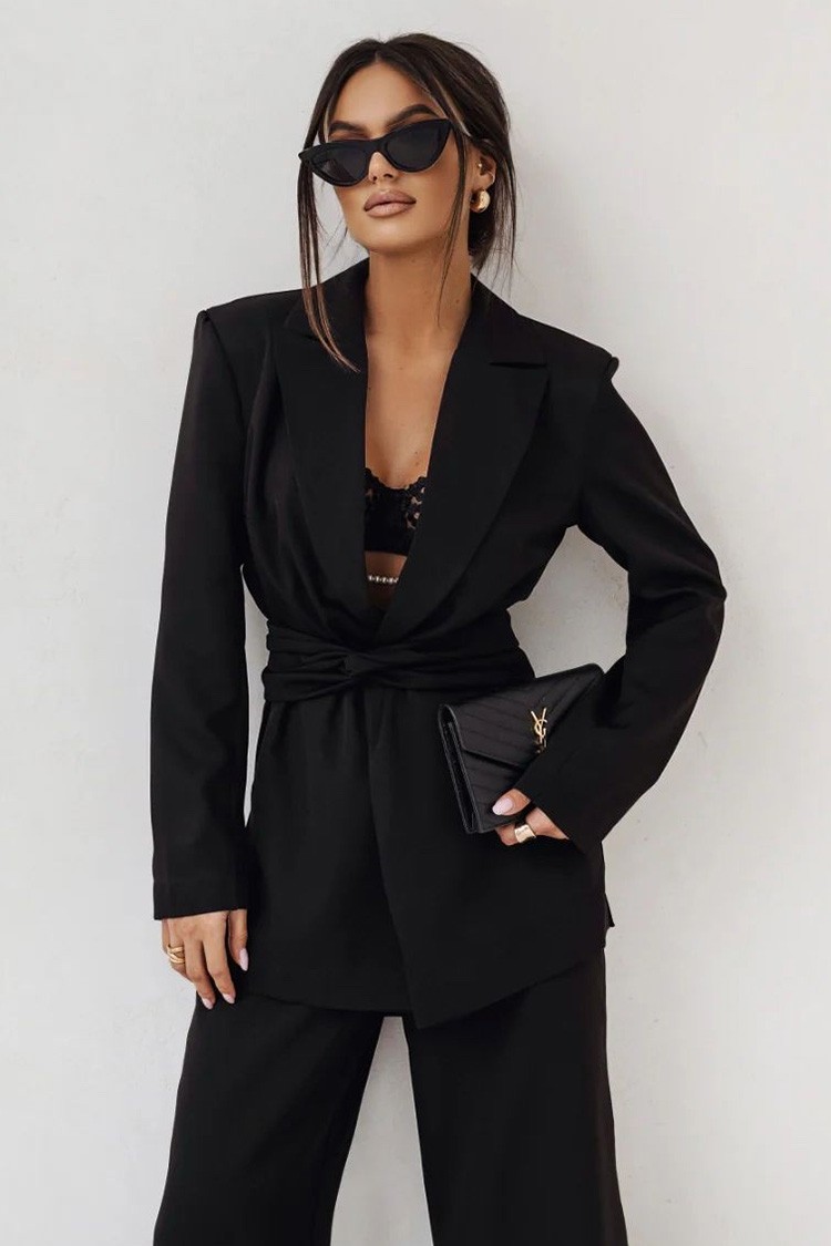 - Сакото е с удобна кройка и ефектен колан, който може да носите по различни начини.