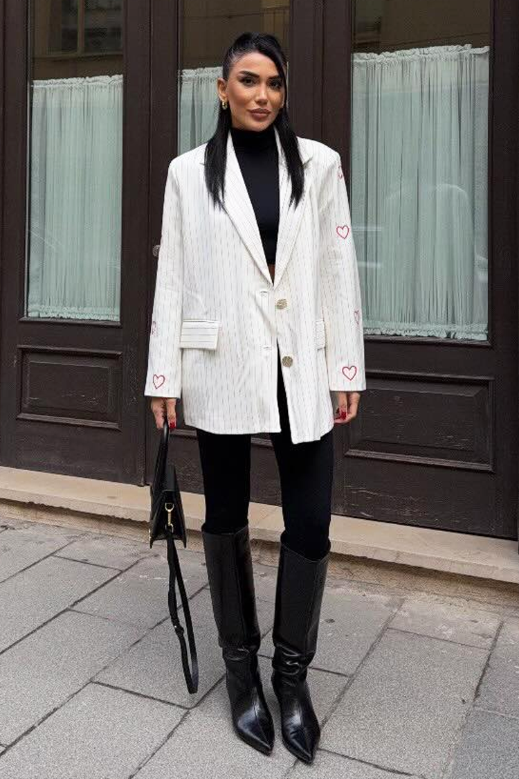 • Допълнете визията си с това класическо сако, подходящо за различни модни комбинации и офис визии.