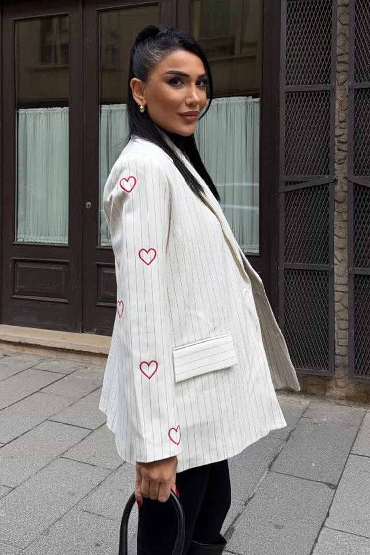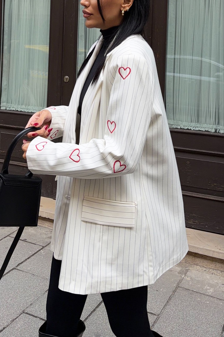 • Съчетайте стилното с удобното! Моделът е с овърсайз дизайн, яка, джобове, десен на райета и сърца.