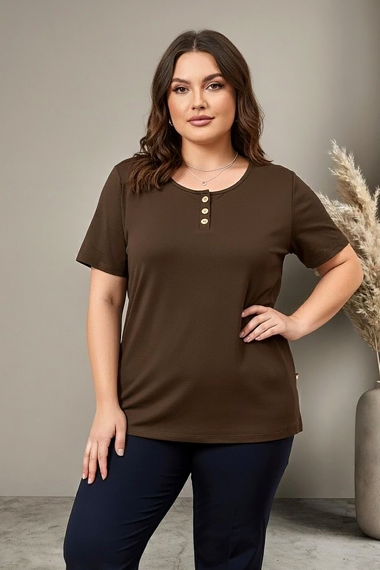 • Отлично пасва на всяка фигура. Моделът е с къси ръкави, копчета и класическо деколте.