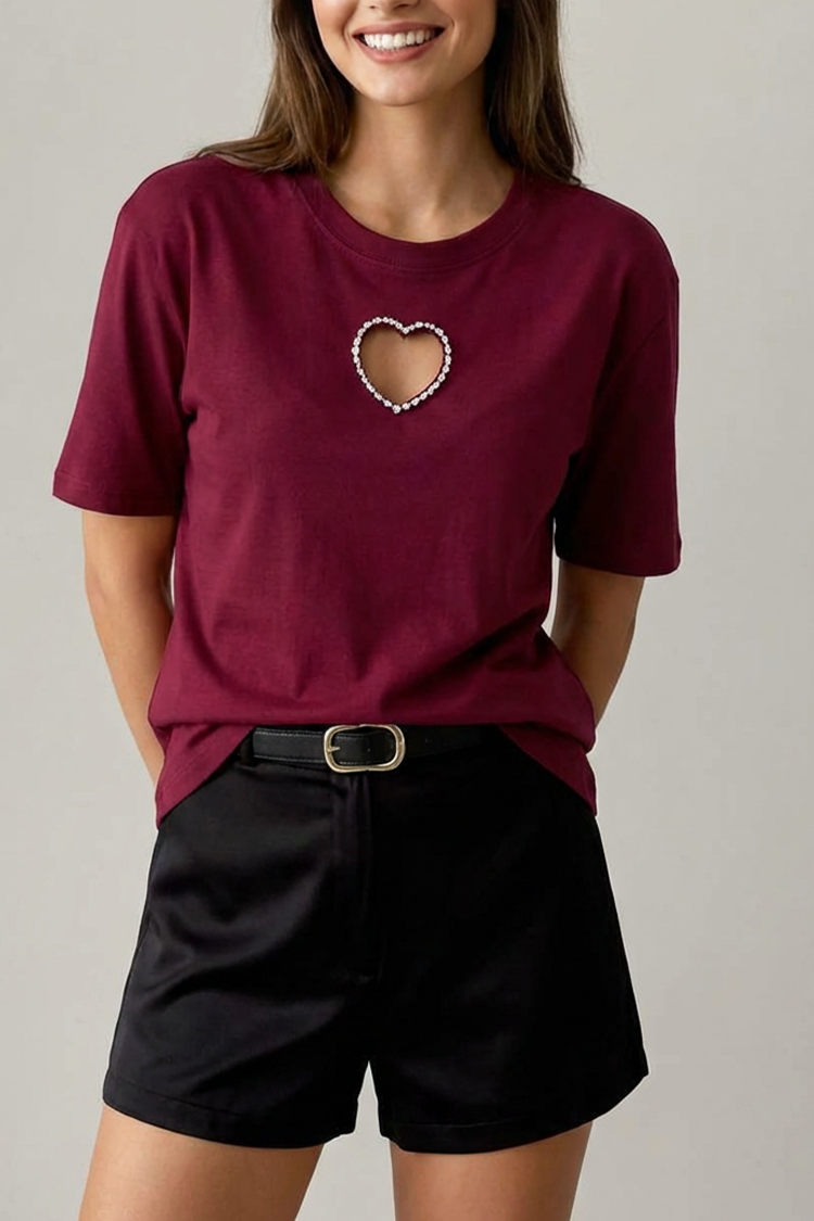 - Моделът е с къси ръкави, обло деколте, акцент във формата на сърце с декоративни камъни