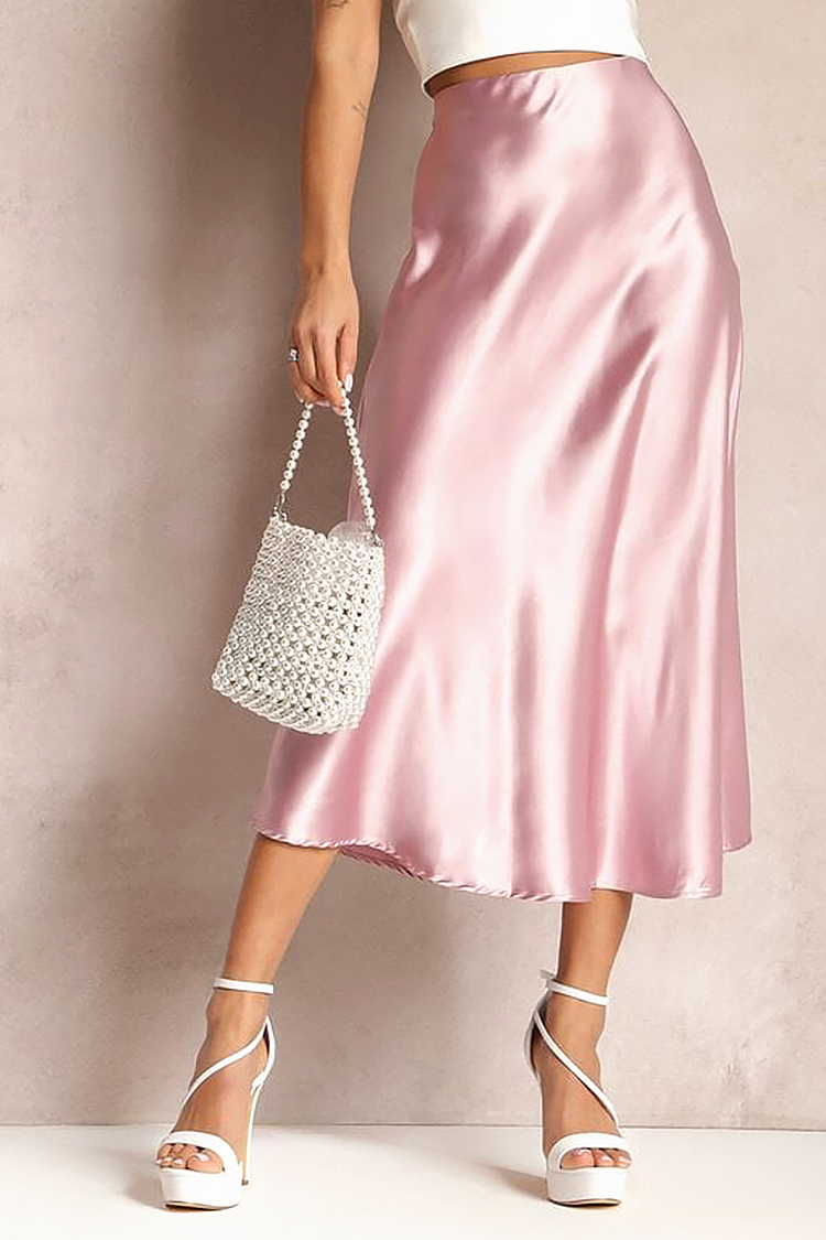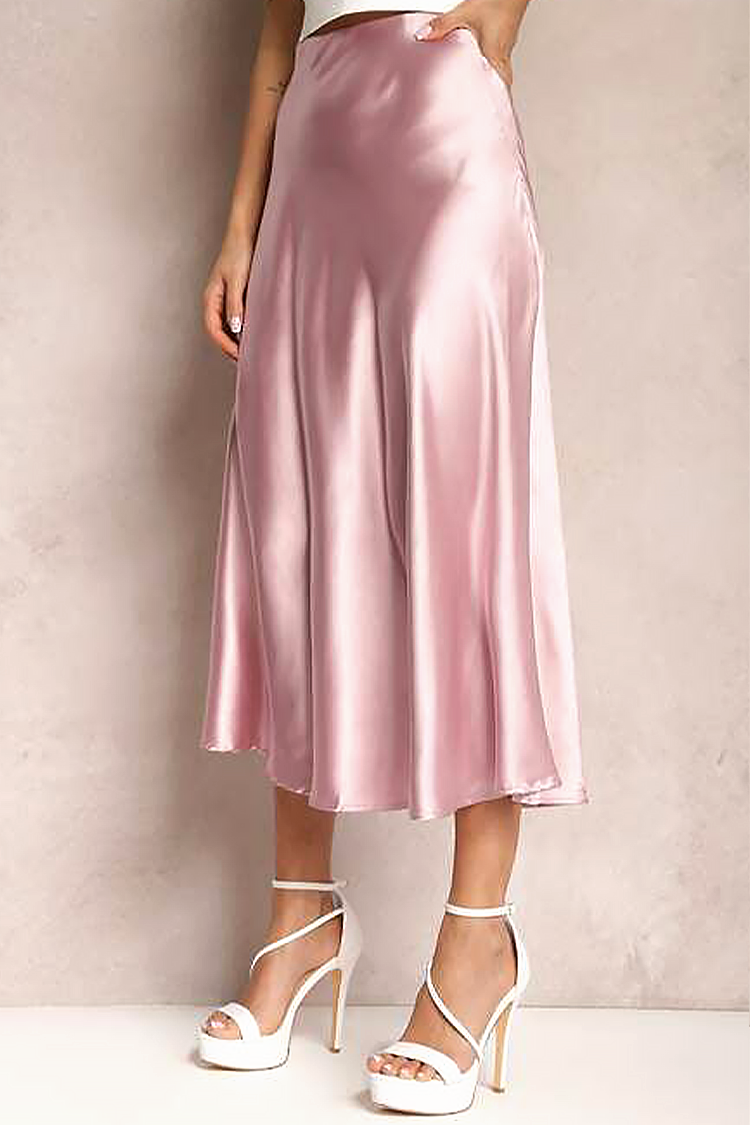 - Моделът е с висока талия, разкроена кройка и сатенена материя.