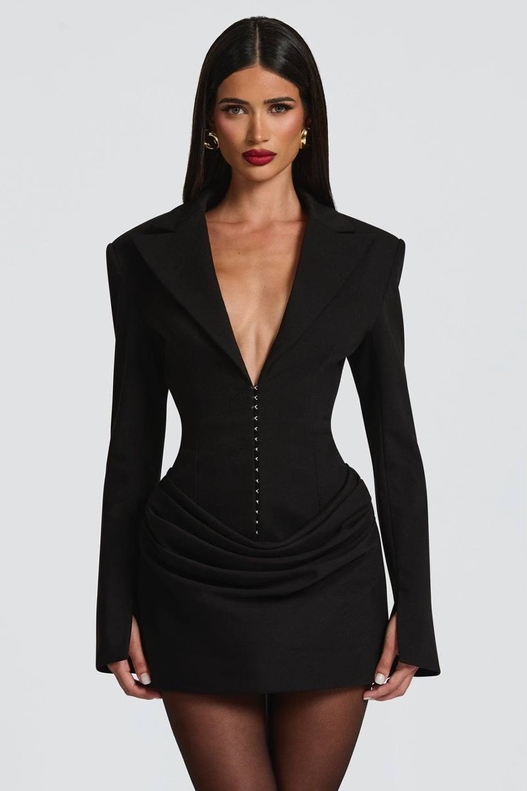 - Изберете тази къса рокля тип блейзър, в черен цвят - подходяща за парти визии и специални поводи.