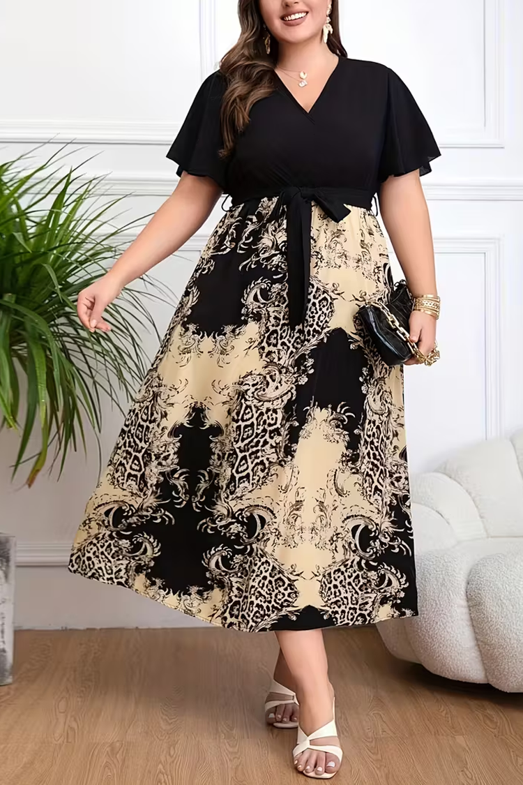- Миди рокля с колан на талията и двуцветен десен, подходяща за вашето стилно ежедневие.