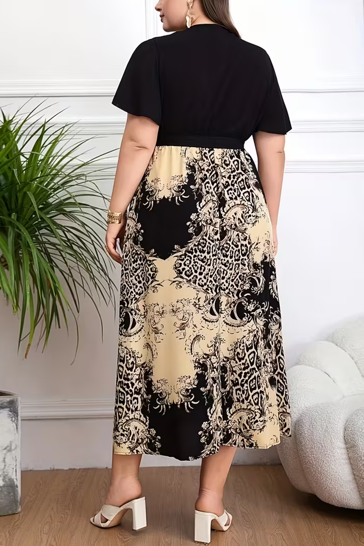 - Роклята е с къси ръкави и макси кройка, подходяща за всяка фигура.