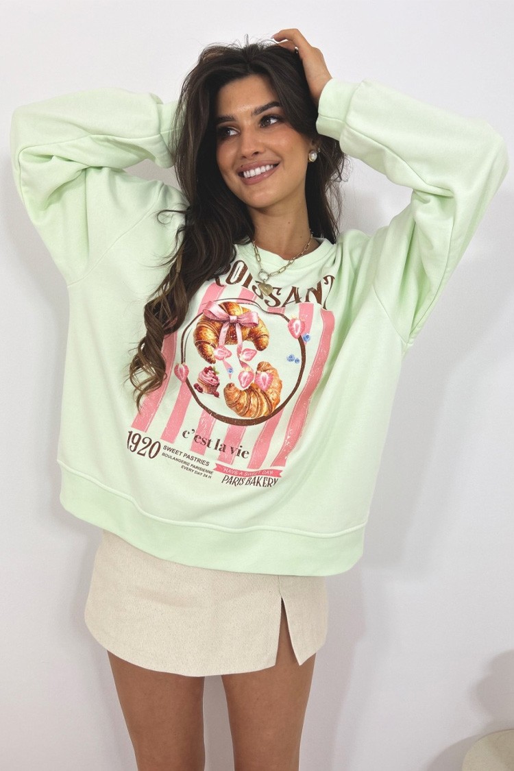 - Моделът е с дълги ръкави, свободна кройка и ефектна, цветна щампа отпред.