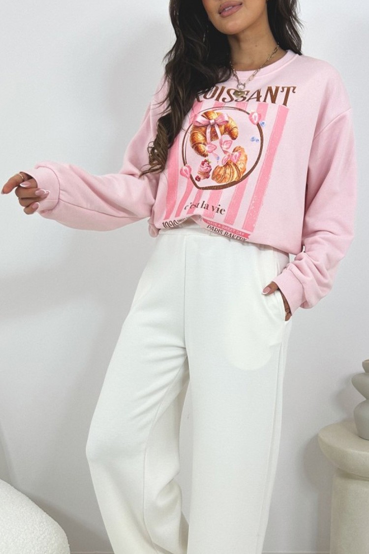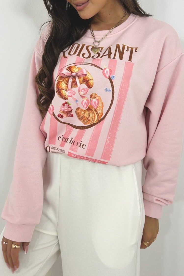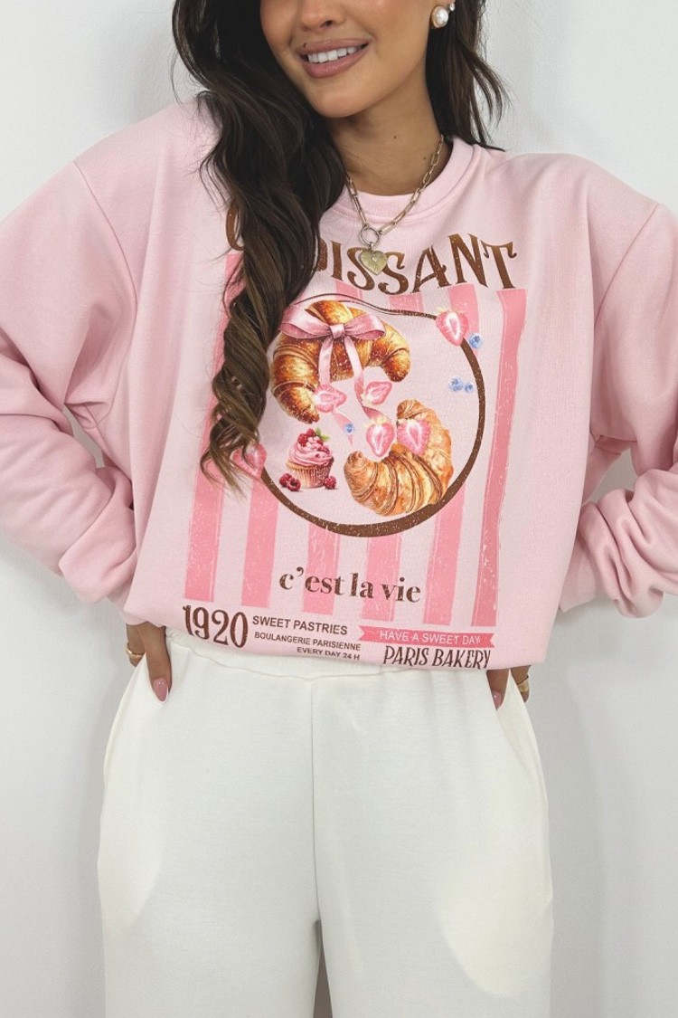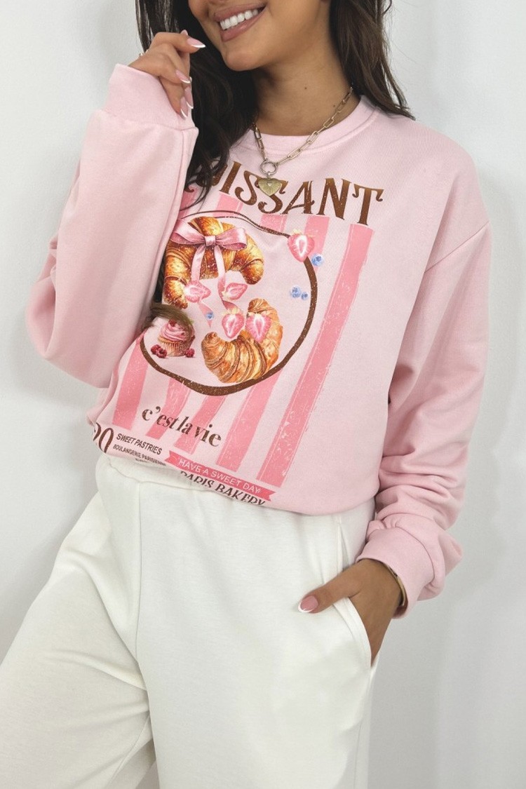 • Моделът е с дълги ръкави, свободна кройка и ефектна, цветна щампа отпред.