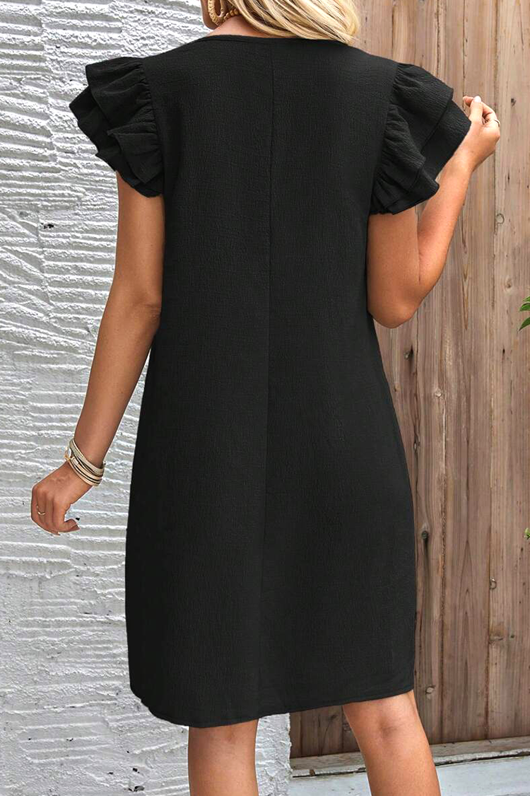 - Къса рокля с едноцветен десен и семпъл дизайн, подходяща за ежедневието.