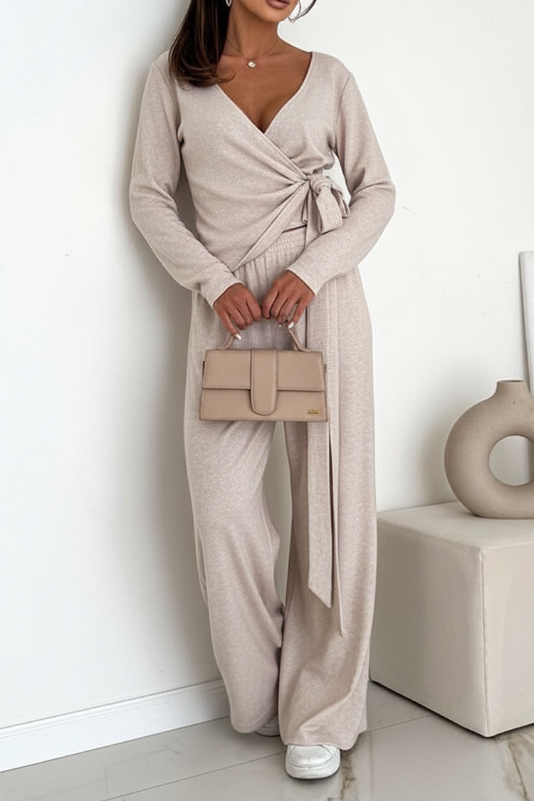 • Ежедневен комплект от две части, състоящ се от блуза и панталон в класически цвят.
