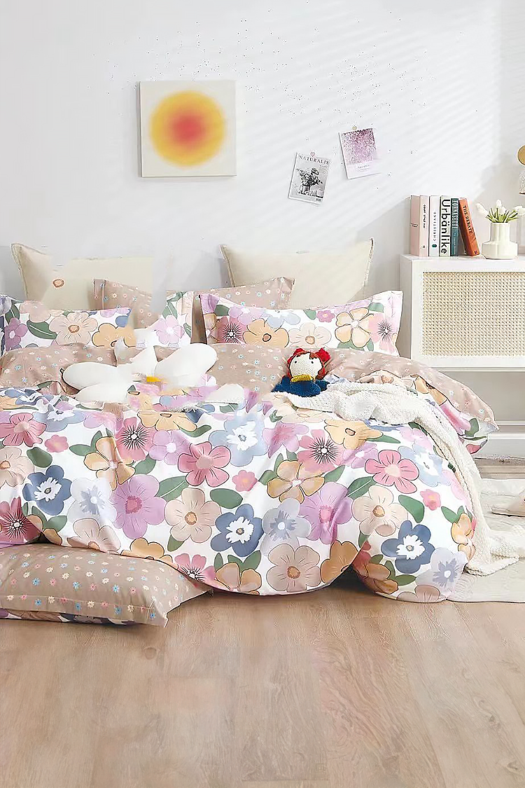 - Спален комплект от четири части с размери 160x200 см., изработен от висококачествен памучен сатен.