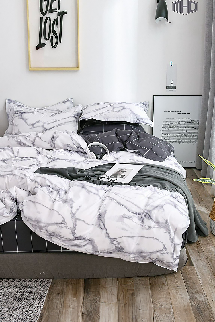 - Спален комплект от четири части с размери 160x200 см., изработен от висококачествен памучен сатен.