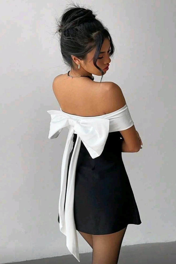 - Моделът е с атрактивен дизайн, елегантна кройка, открити рамене и бяла панделка на гърба.