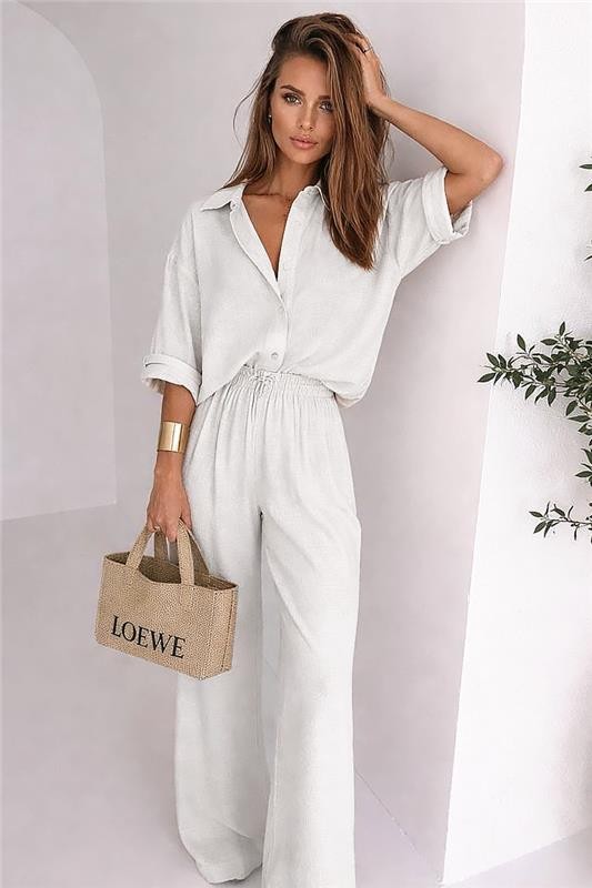 • Ежедневен комплект от две части, състоящ се от риза и панталон в класически цвeтове.