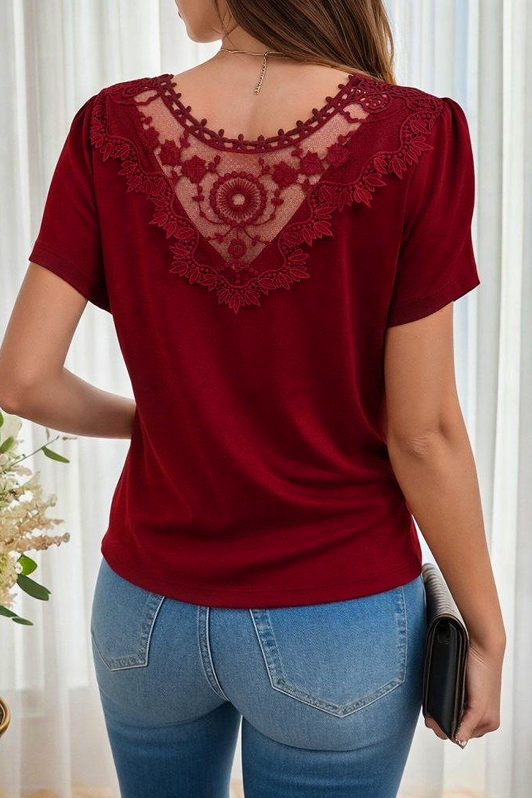 - Моделът е с класическа кройка, къси ръкави и ефектен акцент на гърба с дантела.