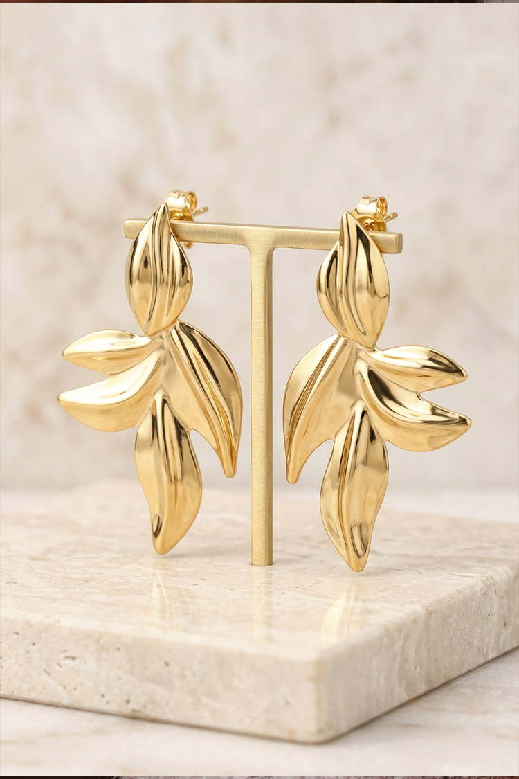 - Дамски, висящи обеци с атрактивен дизайн на цвете, подходящи за различни поводи.