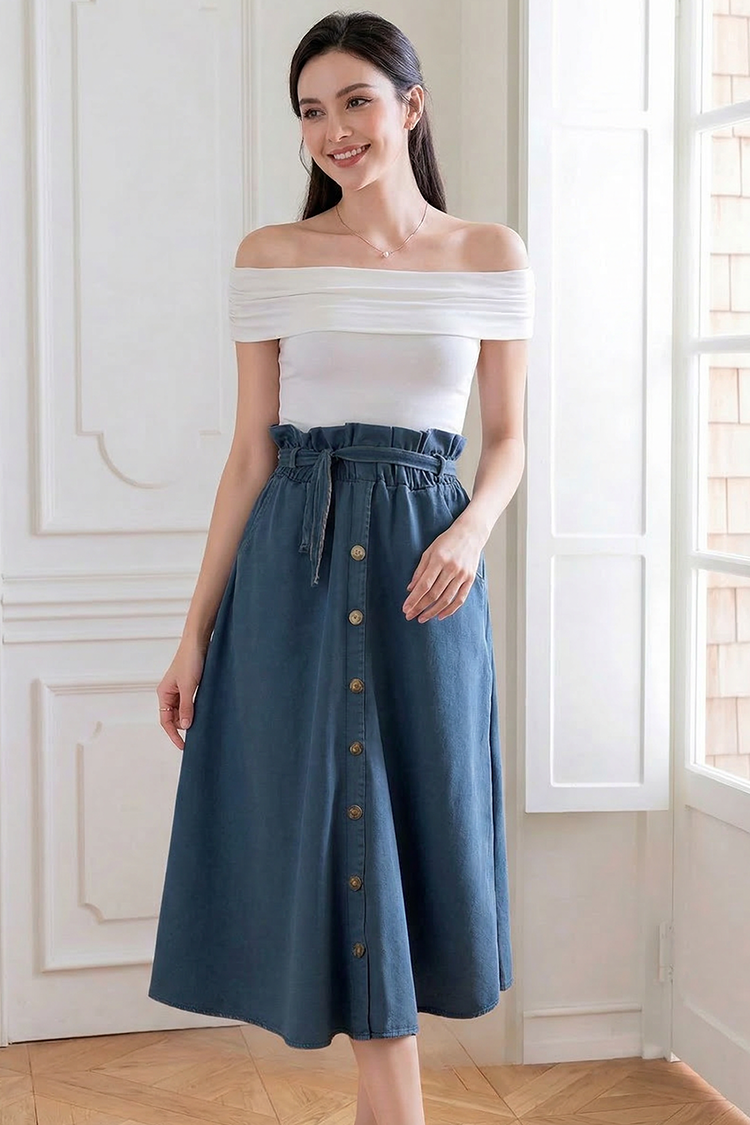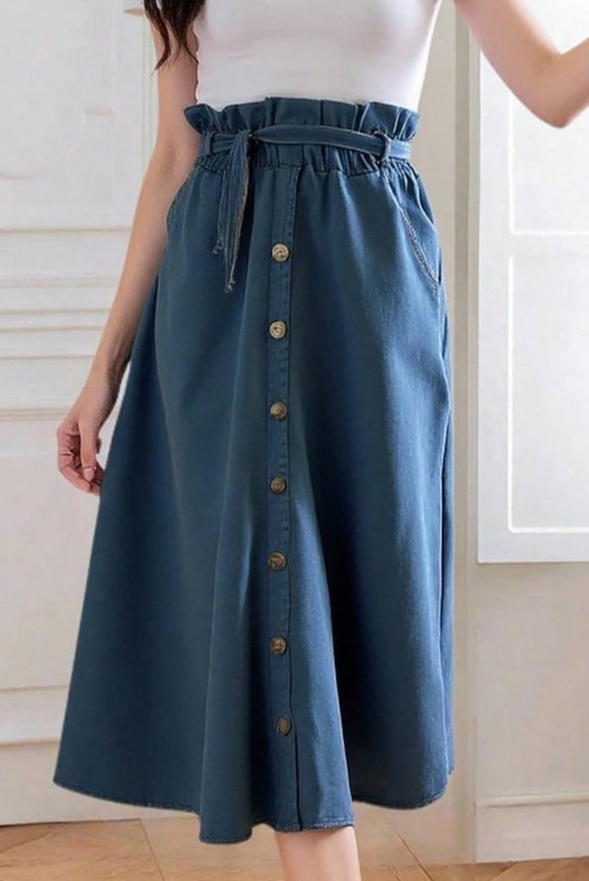 • Модерна миди пола с класически дизайн, подходяща за ежедневни тренди визии.