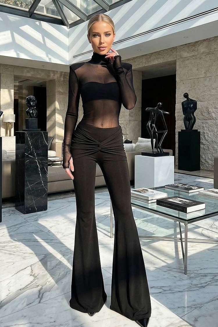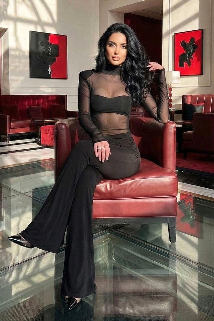 - Горната част е боди с атрактивен дизайн, дълги ръкави и тюлена материя.