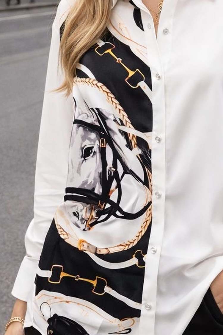 • Моделът е с копчета по цялата дължина, яка, класически дизайн и принт отстрани.