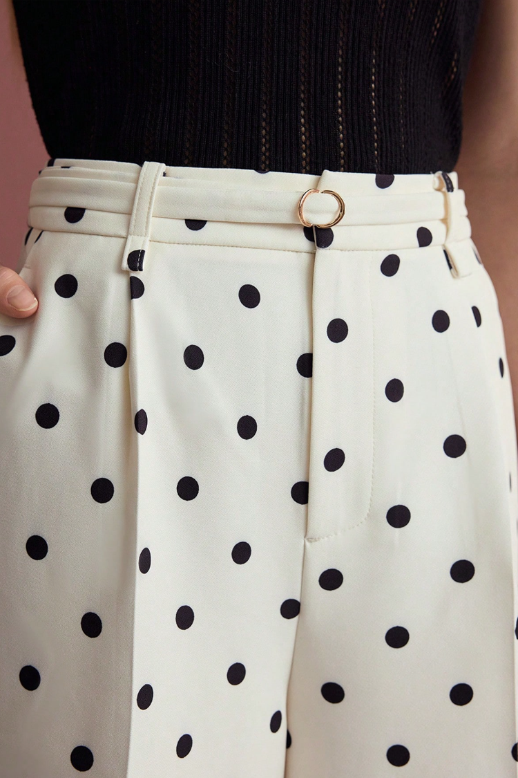 - Моделът е с висока талия, права кройка, ефектни ръбове, странични джобове и екрю цвят.