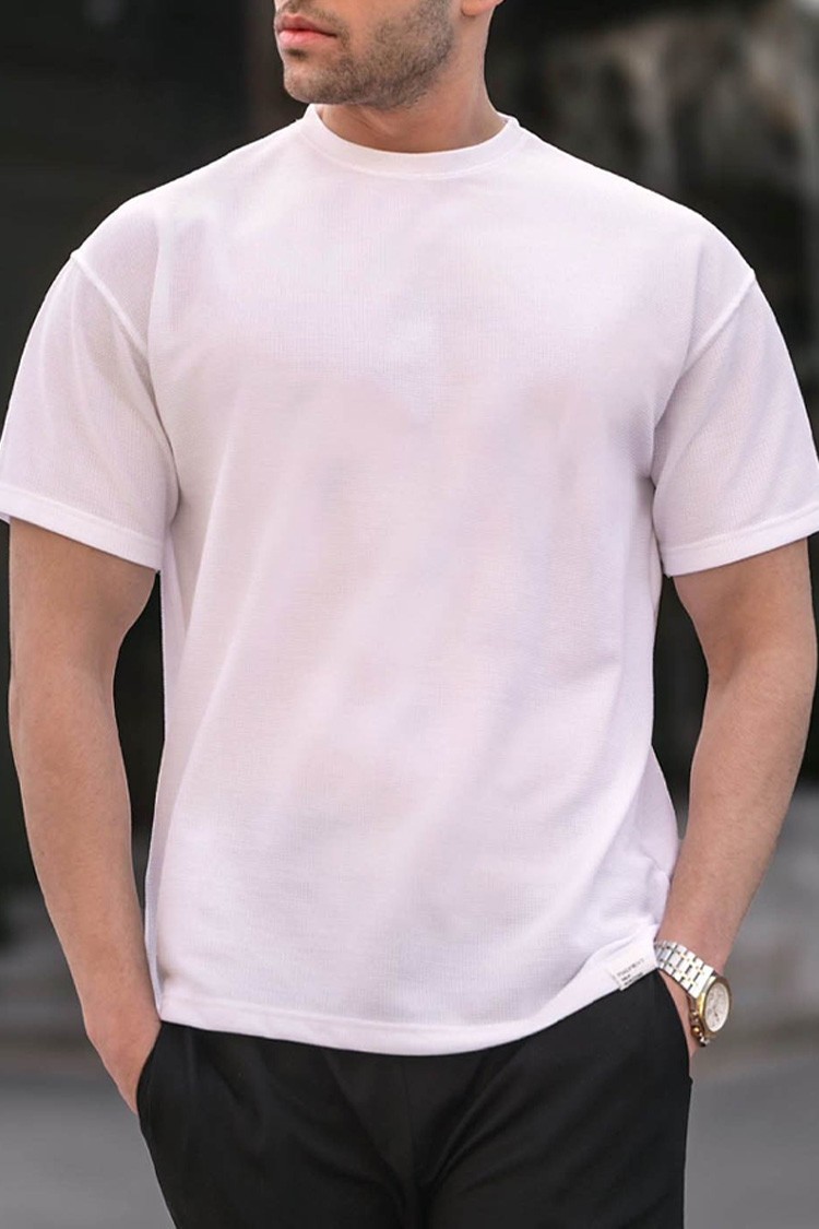 - Мъжка тениска с обло деколте деколте, подходяща като допълнение към ежедневния ви аутфит или спорт.