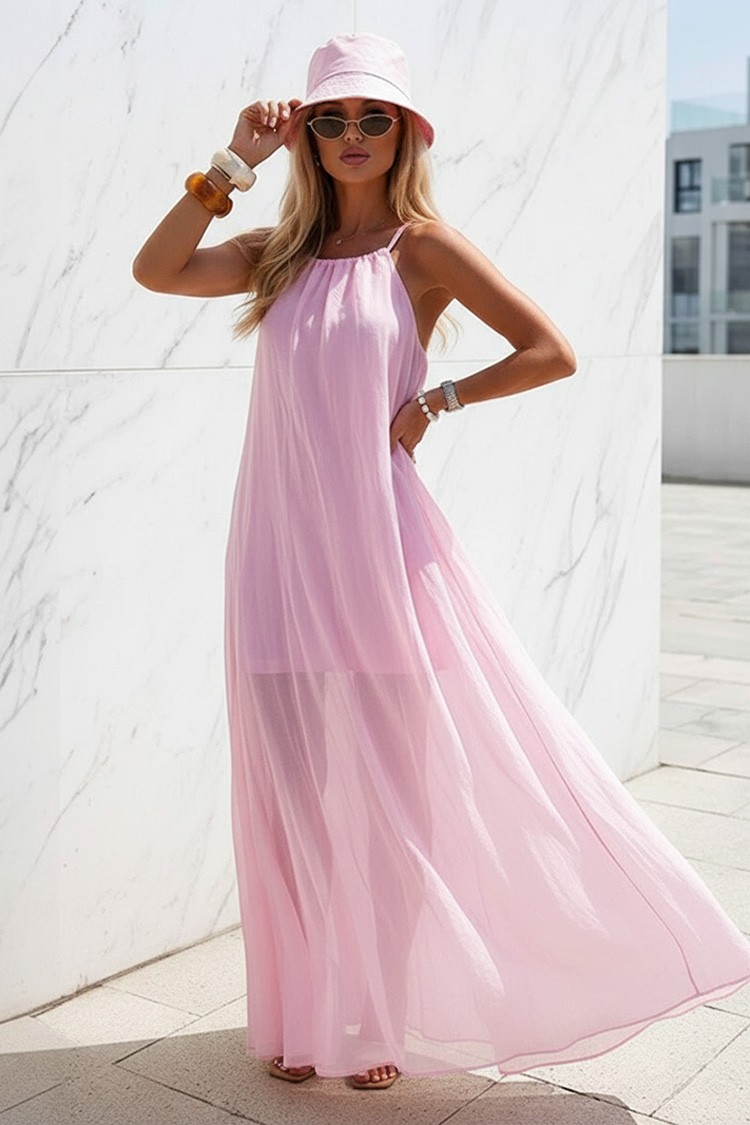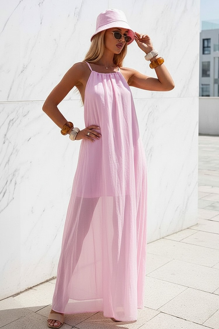 - За тренди и ежедневна визия, изберете тази дълга рокля с атрактивен и дизайн и цвят пудра.