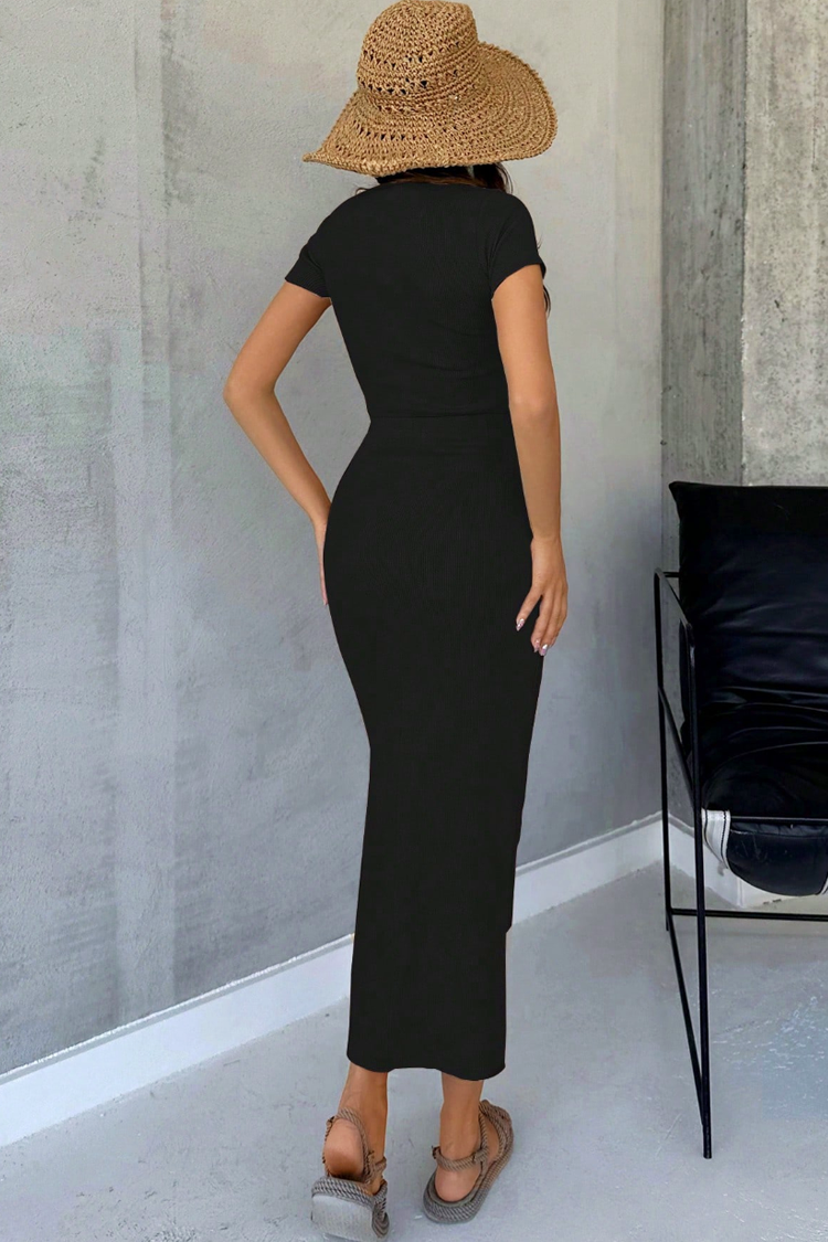 - Полата е с кройка по тялото, секси цепка от едната страна, миди дължина и висока талия.