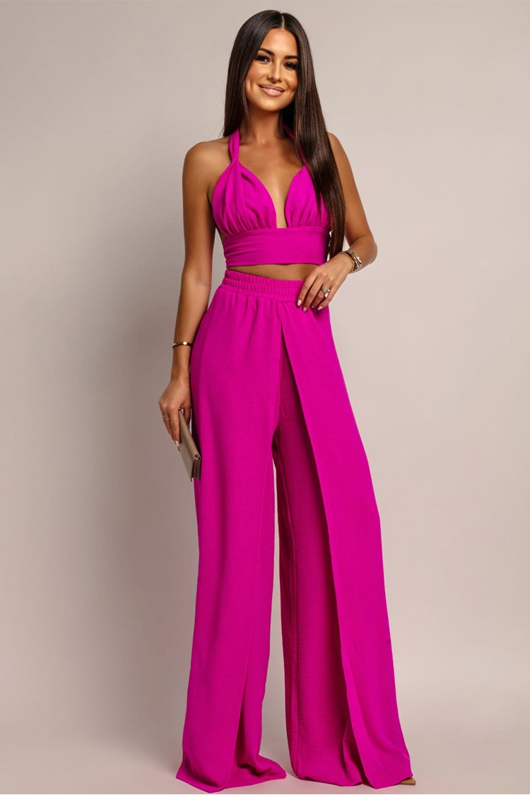 • Горната част е с кроп дължина, подчертаващо и секси деколте, гол гръб и ефектно завързване зад врата.