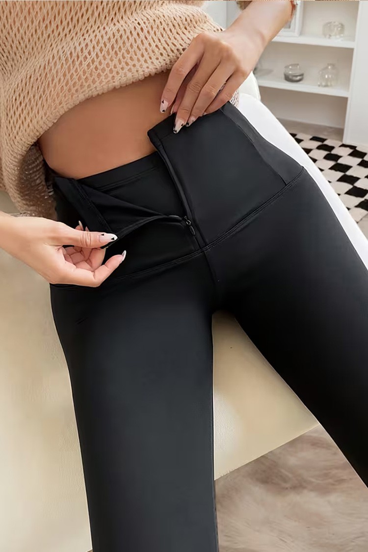 - Моделът е с висока талия с цип за лесно обличане, SLIM FIT кройка и черен цвят.