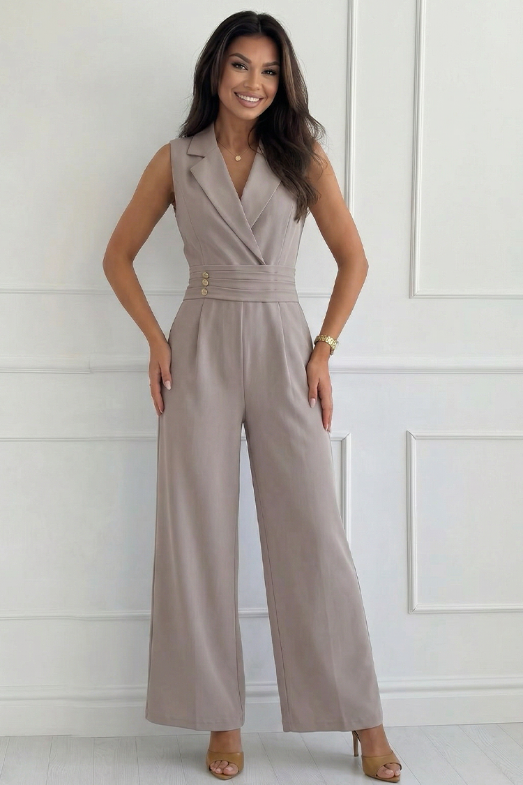 елегантен гащеризон с ревери и златни копчета SELESTE MOCHA