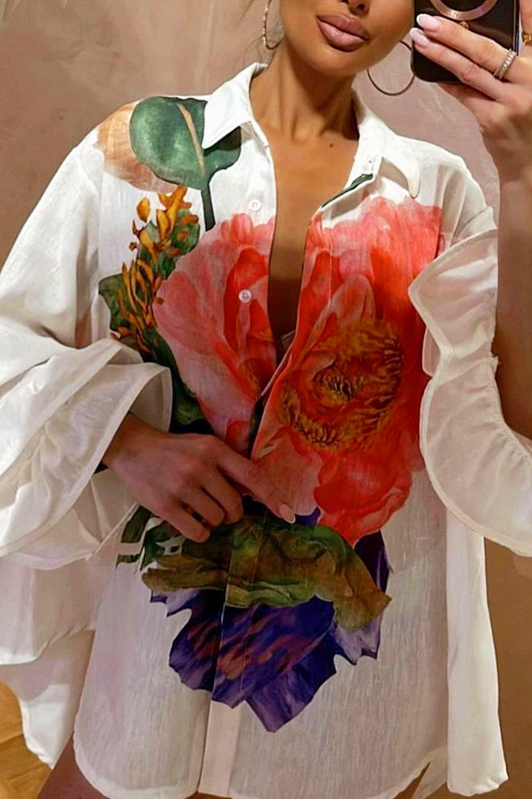 Светлият основен цвят на ризата и ярките цветове на флоралния мотив създават свежо, пролетно настроение, а класическата яка и предното закопчаване придават завършен и изискан вид.