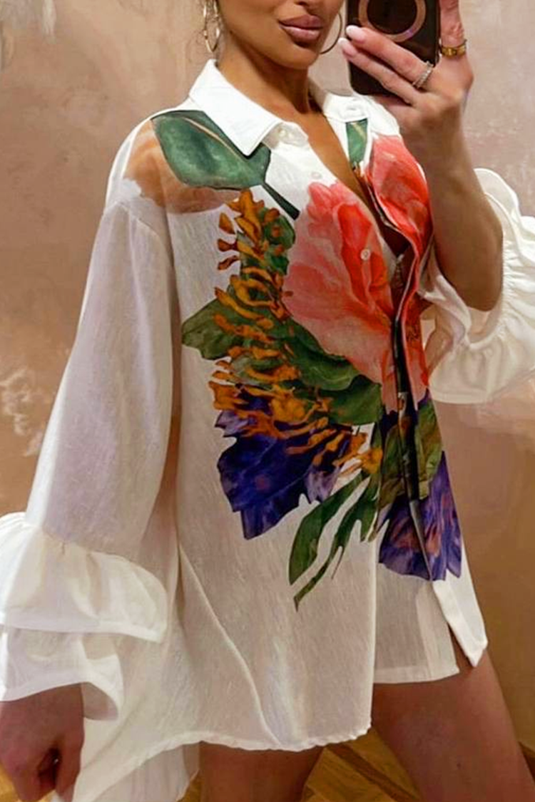 Стилна асиметрична дамска риза с ефектен флорален принт, която съчетава елегантност, комфорт и модерно излъчване. Моделът впечатлява с двойни волани на ръкавите, които добавят женственост и движение, докато свободната кройка осигурява лекота и комфорт през целия ден.